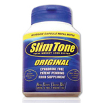 The SlimTone Easy Weight Loss System The SlimTone Total Weight Loss Program™ is a multi angled approach to helathy weight loss. It comes complete with our Sensible Eating Guide with diet plan and two formulas: SlimTone Original and SlimTone Stimulant Free. Providing all the diet information you will need for fast, healthy and succesfull weight loss. The SlimTone range supplements work on one simple principal; your body can only burn fat in the presence of calories in the form of protein or carbohydrates. You must supply adequate energy (approximately 10%) in the form of blood sugar (converted from protien or carbohydrate) at all times in order to burn fat (or create a thermogenic response) this will also drastically reduce muscle wasting and possible metabolic slow down, making post diet weight gain less likely. |
